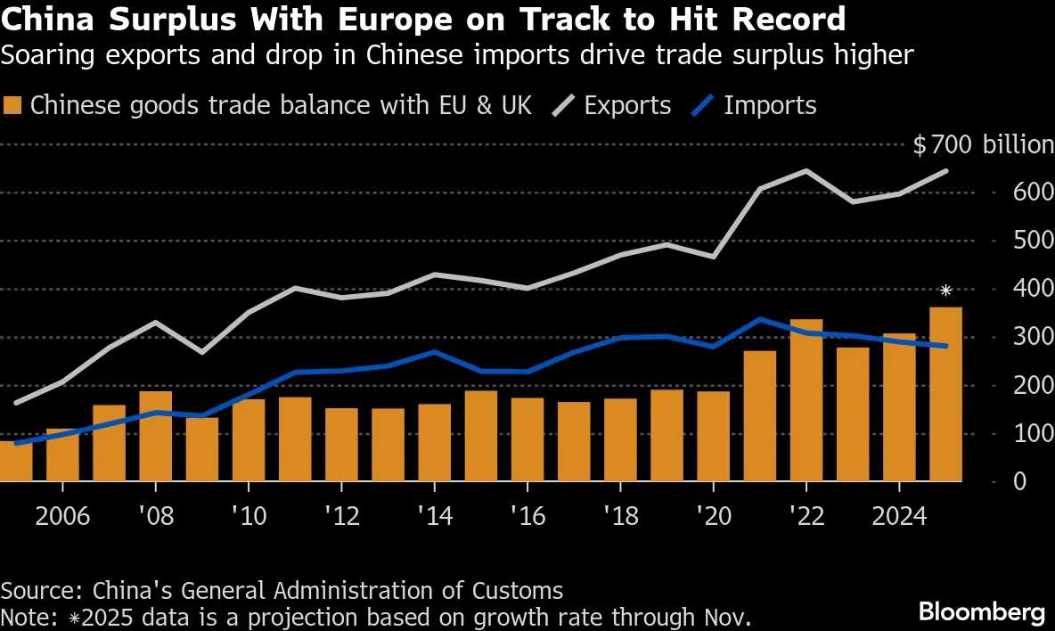 Τα τελευταία 20 χρόνια (2005-2024), η Κίνα επένδυσε 1,5 τρισ. δολάρια στην απόκτηση υφιστάμενων επιχειρήσεων στην Ευρώπη και περισσότερα από 1 τρισ. δολάρια στη δημιουργία νέων επιχειρήσεων (σύμφωνα με το American Enterprise Institute).